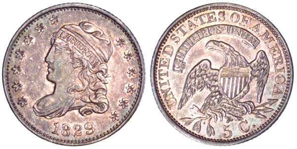 This remains the second use of obverse 4 and is now the sixth use of reverse E. Die crack across Liberty's cheek is heavy. Another crack joins stars 3 and 4 and an additional crack connects star 4 to the rim. The reverse has a tiny die chip inside the left angle of N, a small rim break in the dentils over M, and a heavy crack through the top of E in AMERICA to left top of adjacent R. A short crack connects the base of I in AMERICA to the bottom of adjacent C.