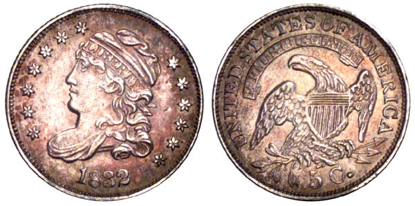 This reverse die was a workhorse in the series, being used for four different die marriages and nine additional remarriages, and two different Mint buildings (if the first coins were actually struck in 1832). The emission sequence is 1832 LM-8.1, 1833 LM-2, 1833 LM-3.1, 1832 LM-9.1, 1832 LM-8.2, 1832 LM-9.2, 1833 LM-3.2, 1832 LM-8.3, 1833 LM-3.3, 1832 LM-8.4, 1833 LM-3.4, 1832 LM-8.5, 1833 LM-3.5.