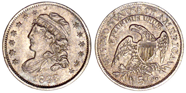 Russell Logan discovered this variety in 1980 with publication by David J. Davis in his "Early Half Dimes: Observations and Discoveries," a paper presented at the 1986 ANS Coinage of the Americas Conference and subsequently published in America's Silver Coinage, 1794-1891, including text of all papers presented at this event. The second use of obverse 1 and the second use of reverse T. Obverse and reverse dies have minor clash marks.