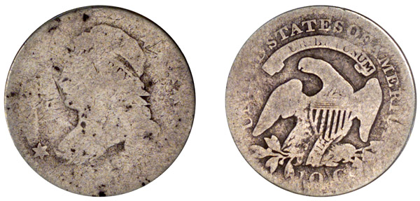 | Double Struck. Light gray surfaces. The first strike was possibly 50 to 60% off-center. The most visible evidence of the doubling is the presence of part of the scroll on the reverse, downward from bottom of the shield. Purchased from David Finkelstein at the 1999 ANA Convention. |