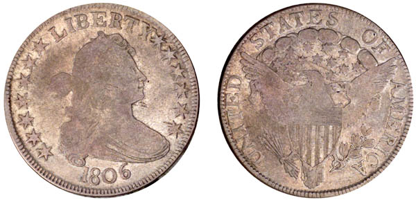 Both obverse and reverse have clash marks. A short die crack connects star 3 to the border. The reverse has a very faint crack through the tops of ST.