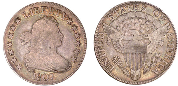 | Actually probably finer but with a very weakly defined obverse. Highly attractive for the grade with medium gray at the centers of both obverse and reverse, framed by green and iridescent toning along the borders. The surfaces are very choice for the grade. Early die state with perfect dies. Purchased July 1997. Ex Elton Dosier. |
