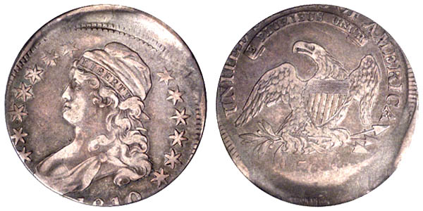| Struck 12% Off-center at 1:00. Medium gray with iridescent toning and lighter gray devices. The off-center striking caused some distortions of the planchet. Light clash marks. An early die state without reverse die cracks. Purchased April 14, 1992 from Stewart Witham. |