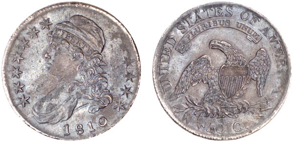 | Very sharply struck with nearly full lustre visible beneath extremely dark toning. The surfaces have minor scratches and light corrosion. Both dies are lightly flowlined with very weak border details. From Sheridan Downey's Sale #7, August 15, 1992, Lot 55. |