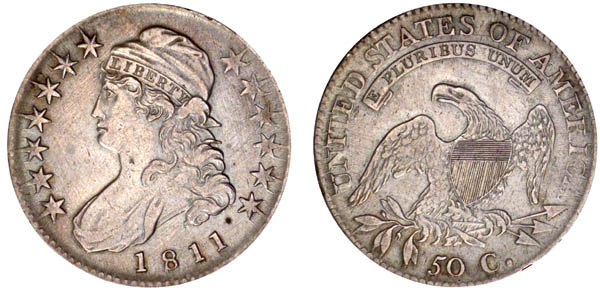 The reverse is cracked through arrowheads and top of 50 C to olive leaves and through UNITED STATES OF AM.