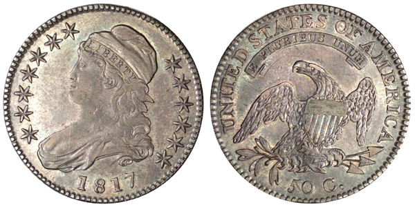 AU-58 Eliasberg and later offered as MS-62; MS-60 (2) Both recorded by Parsley; AU-55 Crowley, Schertz; AU-55 (2) Both recorded by Parsley; AU-50 Recorded by Parsley; EF-40/45 Bowers and Merena 1/1991; EF-40 Sheridan Downey 8/00 Fixed Price offering; EF-40 This example from the Pugh Collection; EF-40 Stack's 4/1987; VF-35 Brilliant Collection, sold by us in January 1992; VF-30 Superior 2/01; VF-25 Sheridan Downey 10/98; VG-8 Robinson S. Brown, Jr. In addition, seven examples of this variety were recorded by Logan, probably all included in the list above. This listing includes 15 examples with the probability of a couple duplications. In a recent offering of a different example of this variety, Sheridan Downey stated that there are now about 20 examples known. Of those, five were stated as being AU or better. Perfect obverse and reverse dies. Previously certified EF-40 by PCGS.