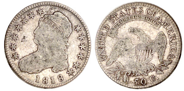 | Doubled obverse. Light gray surfaces with a few splashes of darker steel toning. Trivial abrasions are noted. The obverse has doubling to the east. The reverse is cracked throguh the tops of TED STAT. Purchased April 14, 1992 from Stewart Witham. Earlier from Stack's, October 1960. |