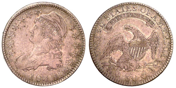 | Double Struck. Very lightly cleaned with pale heather toning. This is an exceptional double struck example. All design features are shifted almost 2.5 mm. with the first strike counter clockwise from the final position. All four date digits are visible from each strike. Many stars are doubled. On the reverse, most doubling is visible on the right half of the coin. Six arrowheads are visible, for instance. Perfect dies. Purchased April 14, 1992 from Stewart Witham. Earlier from the 1981 ANA Convention. |