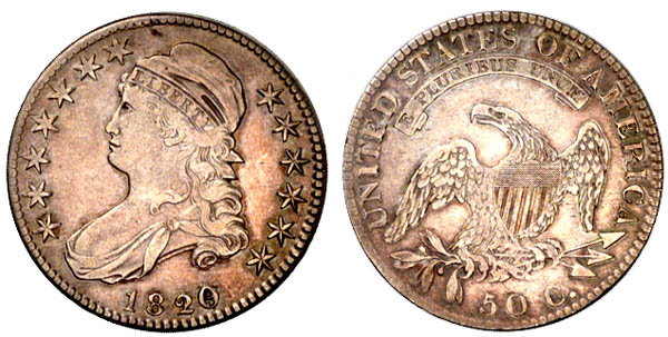| Unlettered edge. Lightly cleaned with light gray surfaces and hints of toning. Refer to the comments for 1819 O-107a, also with unlettered edge. The texture and appearance of the edge on these two examples is virtually identical. Extremely important and very rare. Not described by Overton in his first edition. 13.56 grams. Purchased April 14, 1992 from Stewart Witham. |