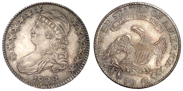 | Double Struck. The obverse stars at left are doubled. Other very minor obverse doubling is noted. A similar effect as examples with doubled profile, except in the opposite direction. This is a stunning example with satiny gray lustre in the fields, highlighted by deep steel and iridescent toning. Very sharply struck with especially strong central details. Previously certified MS-63 by NGC. Purchased October 16, 1996 from Sheridan Downey. |