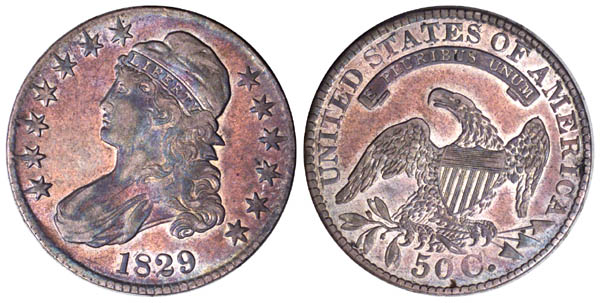 The obverse has a fine die crack through inner points of stars 10 and 11 to the lowest curl. This reverse die is common to this and the first overdate, O-101, along with O-107. The reverse die has not been lapped in either this or the O-107 combination, thus these two varieties were struck before the overdate.