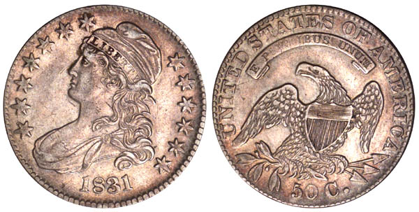 The obverse is lightly cracked at base of date and through stars at left.