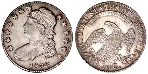 Light gray surfaces with considerable lustre and traces of iridescent toning. Minor hairlines and trivial surface marks.